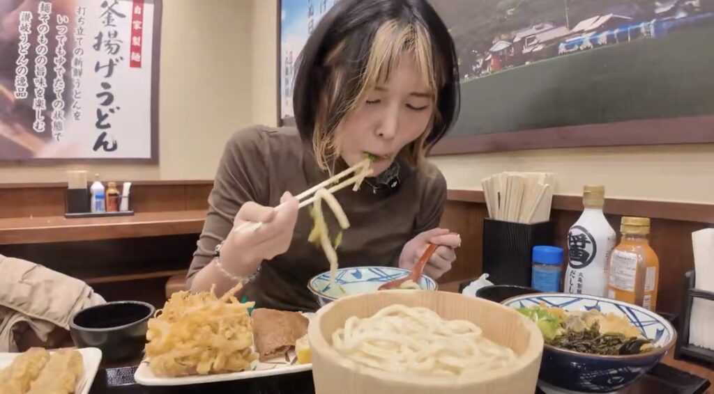 飯友らん子さんは12月24日に自身のXアカウントで「丸亀製麺うどんら9人前ー!!」と投稿し、丸亀製麺で大量のうどんに挑戦する動画を公開しました。しかし、この動画での彼女の食べ方が視聴者から強い批判を受けることになりました。